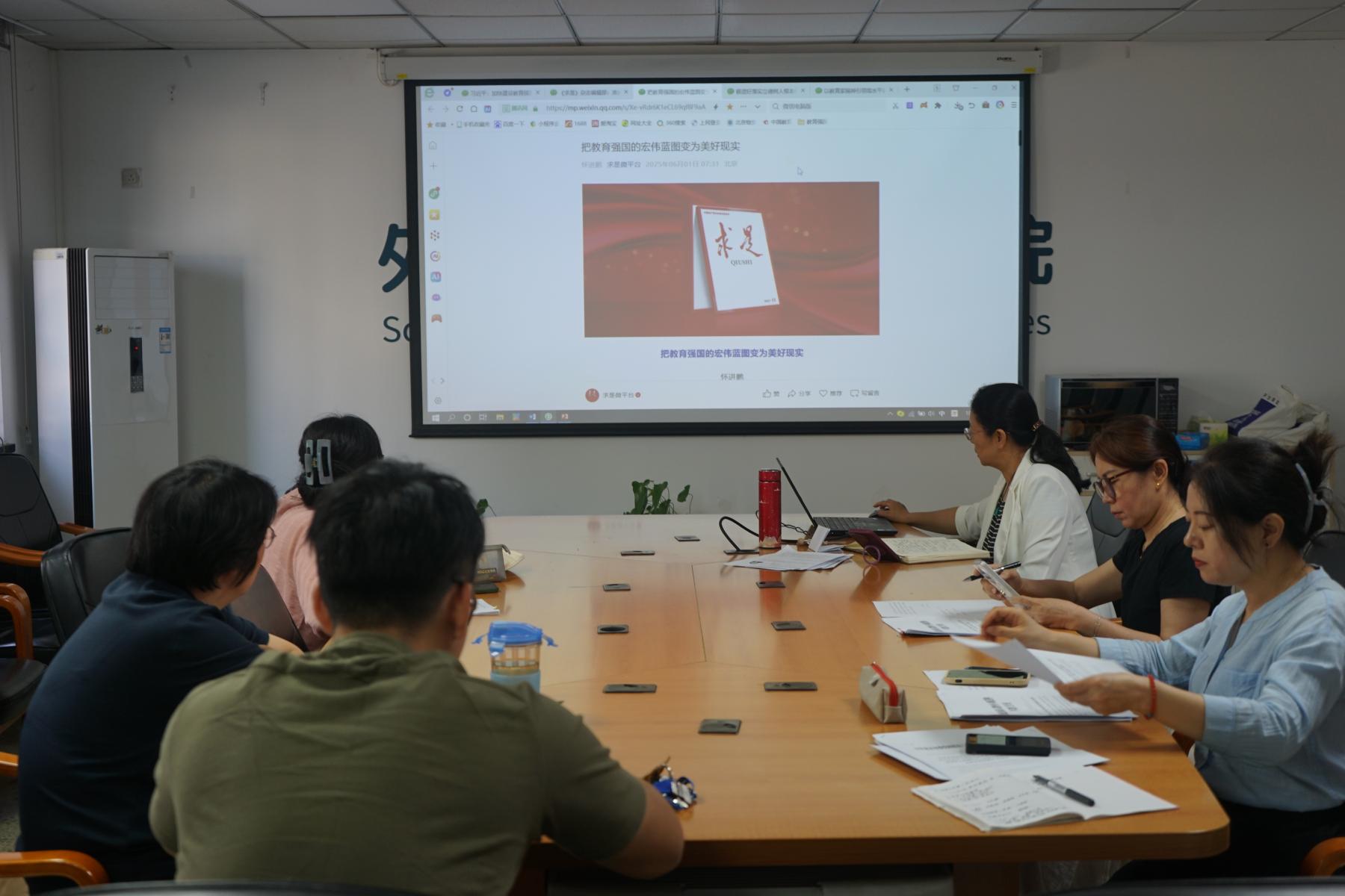 6月17日上午,草榴视频 理论学习中心组于人文楼108会议室举办了理论学习中心组(扩大)专题学习研讨会。此次会议聚焦于深入学习贯彻习近平总书记关于教育的重要论述,重点研读《求是》2025年第11期所刊载的习近平总书记关于“教育强国建设”的系列专题文章,旨在精准把握教育强国建设的核心要义与实践要求,紧密结合首都教育发展实际,进一步深化思想认识。学院领导班子成员、党总支委员、各支部书记以及专职组织员均参与了此次学习研讨。会议由党总支书记李华主持。