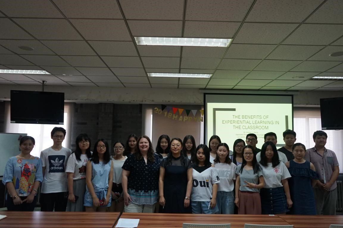 下午2点在人文楼600,Ferris博士为草榴视频 师生做了第二场题为The Benefits of Experiential Learning in theClassroom的讲座。体验式学习吸收了“在做中学”的教学理念,强调教师要突破传统课堂体验模式,引导学生通过工作实习、科研项目、留学深造和社区服务等实践经历积累学习经验和锻炼学习能力,这不仅会加深学生对所学知识的理解,培养学生的批判性思维,更有助于学生掌握实用技巧,为职业规划做好准备。对教师来说,体验式教学则会提高学生的学习参与度,更好的评价学生学习效果,带来职业满足感。Ferris博士分享了自己在教学过程中指导学生进行体验式学习的实例,指出课堂引入体验式学习必须提前进行规划,行动与反思并行,强化体验过程,做好体验总结。