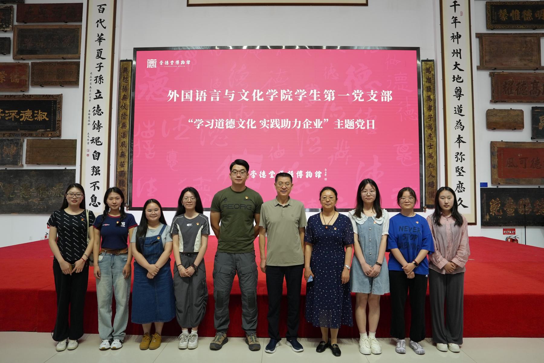 为了更好地围绕北京城乡建设和基层所需,积极服务首都高质量发展,推进党建工作与业务工作深度融合、互促共进,在推进思想教育、专业学习、志愿服务、社会实践、就业创业等方面更好地发挥学生党支部的示范引领作用,6月26日上午,草榴视频 党总支书记李华、学生第一党支部书记朱晨枫带领5名学生预备党员、2名入党积极分子来到崇德堂匾额博物馆开展“学习道德文化、实践助力企业”主题党日活动,李培义馆长、孙畅副馆长及博物馆工作人员接待了来访人员。