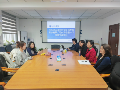 为更好地推动“访企拓岗促就业”专项工作不断走深向实,2024年4月10日下午两点,外语学院党总支书记李华、院长王淑花、副院长李海英、党总支副书记李丹,与北京思文新越教育科技有限公司经理白蕊和运营助理范晨铭在外语学院108室进行座谈交流,李丹副书记主持会议。在参观了学院文化墙后,王淑花院长为白经理介绍了学院学科和专业建设、师资、人才培养特色等进行讲解。随后,白蕊经理为我们讲述了自己先后在新东方等多家知名教育培训机构从业的经历和最终独立创业成立了自己公司的创业故事,公司现在的主营业务是出国英语考试培训,以培训专业度高、细致服务客户见长。从少到多,从小到大,公司经营多年在语言培训领域积累了独到的工作经验和万千优质客户,又经过人际传播和新媒体传播,不断有新学员慕名前来参加培训,积累出国留学语言培训考试提分案例众多。