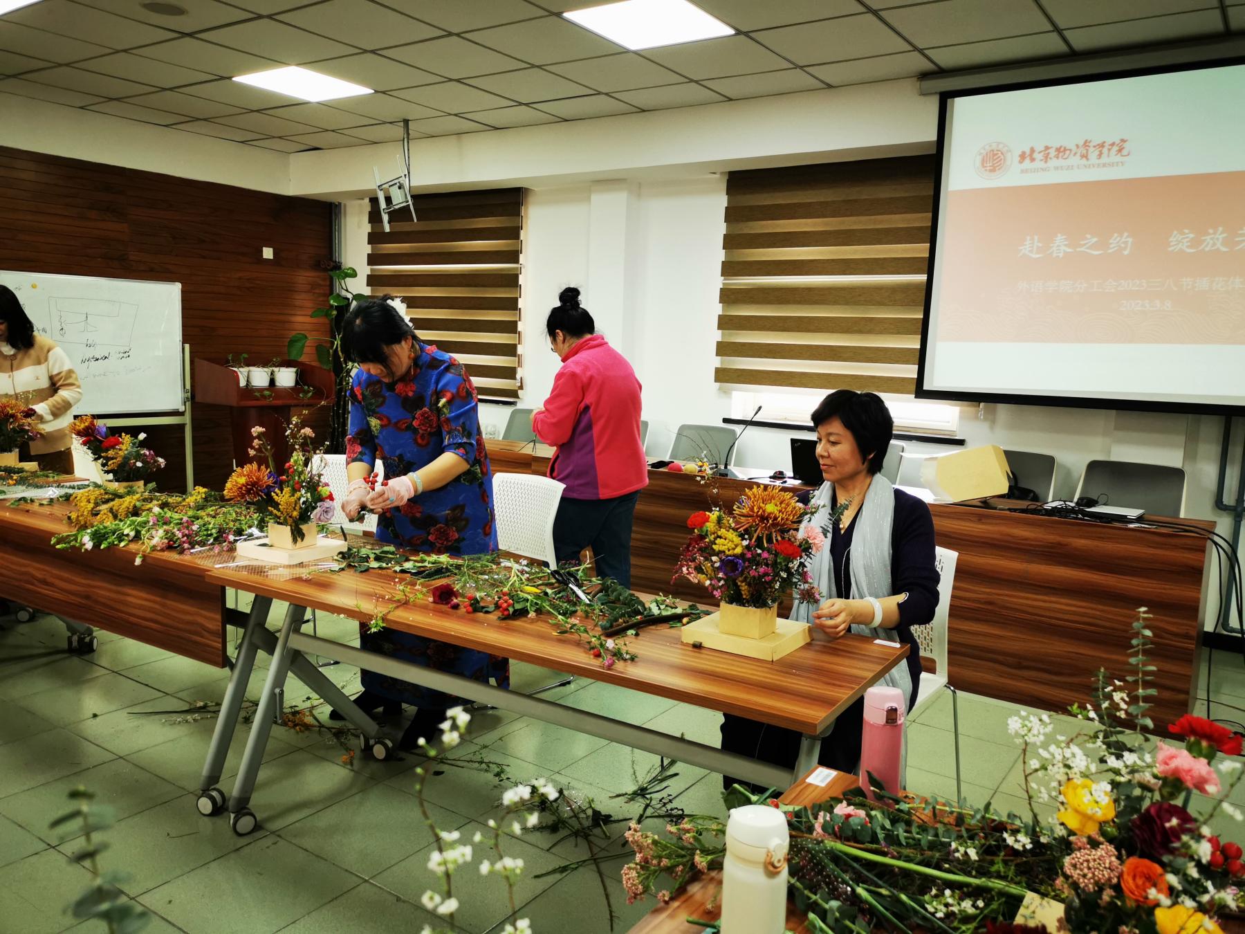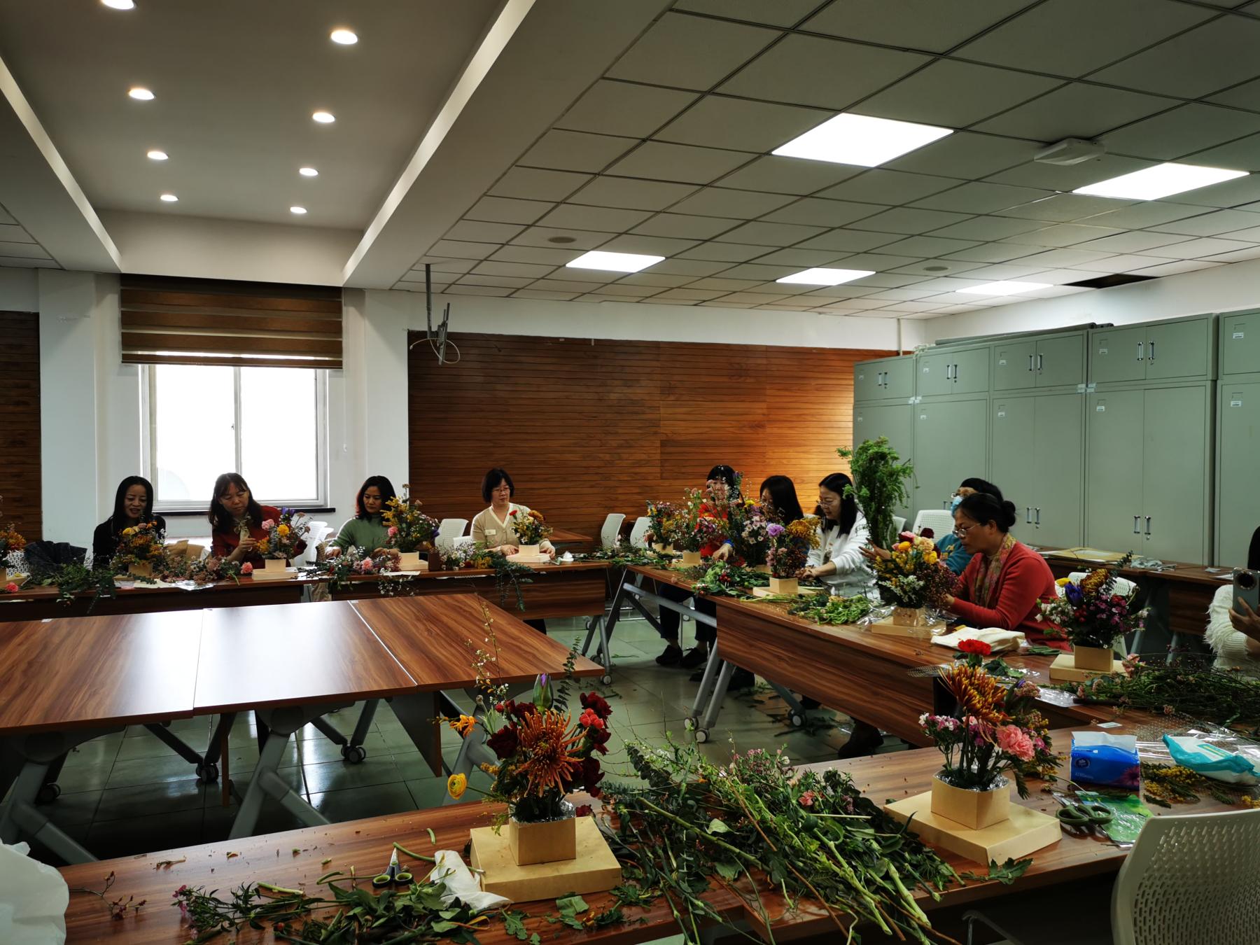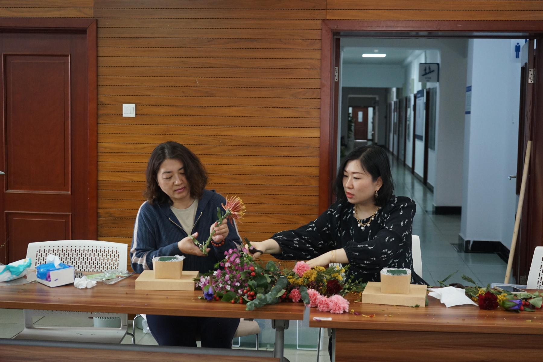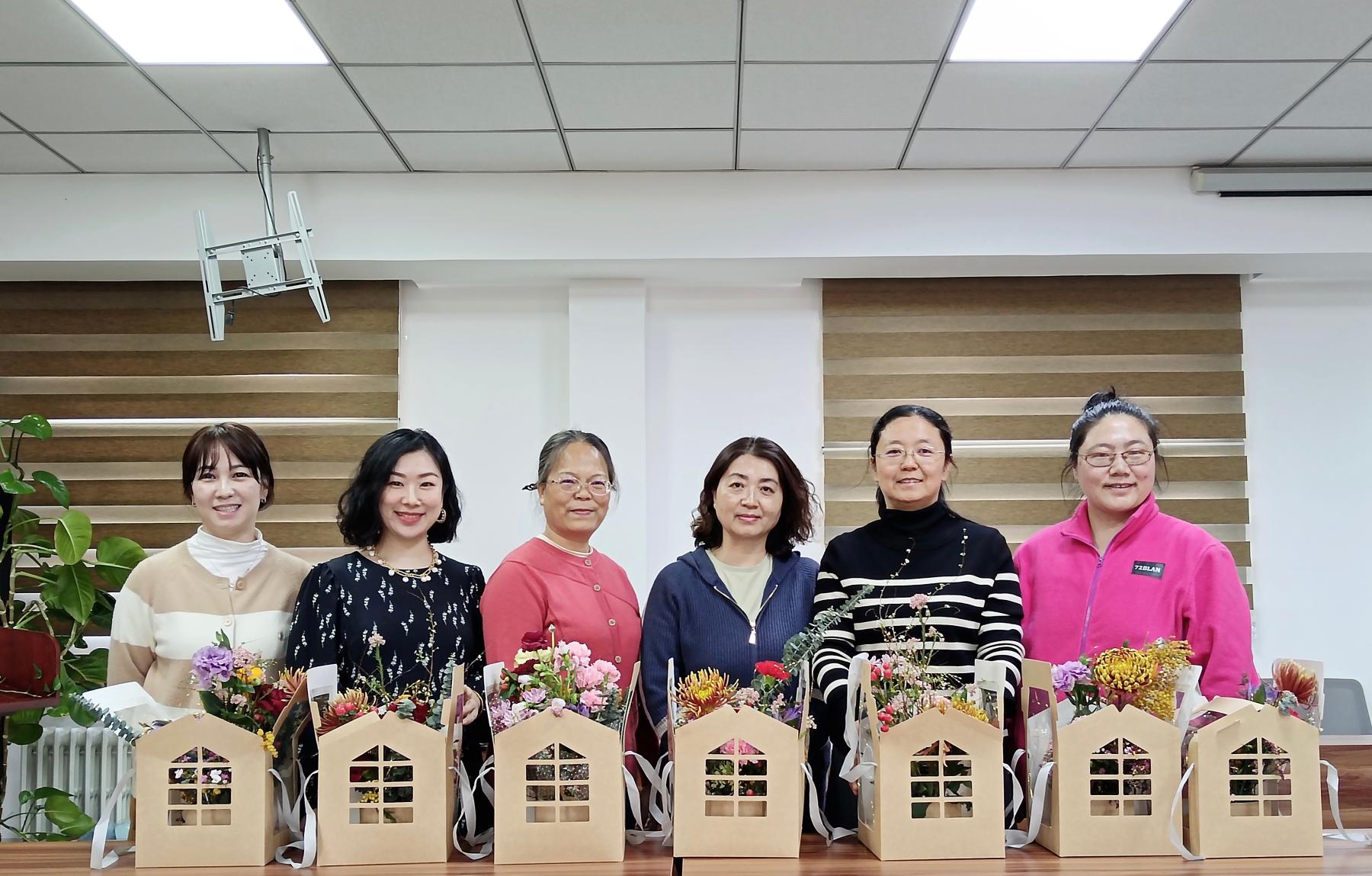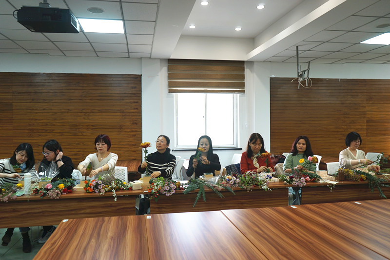 最美不过三月天,花开似海,春意浓浓。为庆祝第113个国际妇女节,构建丰富艺术的校园文化,3月8日下午,草榴视频 分工会在人文楼600会议室举办了主题为“赴春之约,绽放芳华”的插花体验活动。活动由分工会主席裴姝娟主持,草榴视频 党总支书记李华、院长王淑花、副院长李海英和在校女教师们一起,带着花香,共庆节日,共赴春天的约会。