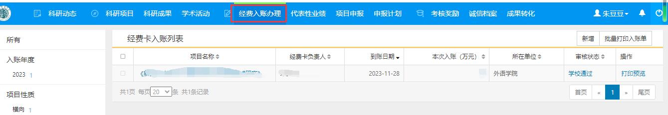 第二步:在个人财务系统查询经费到账信息。